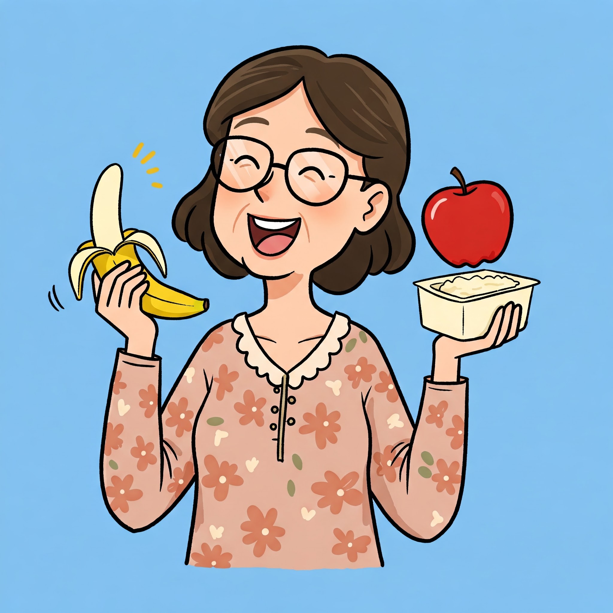바나나는 식이섬유와 천연 당분이 풍부하면서도 소화에 부담을 주지 않는 과일입니다.